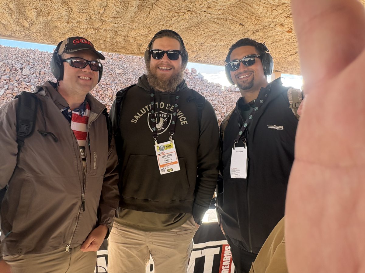Day1/Monday: We went to the range day and got there about 9am, went and stood in line to shoot the M107 50 bmg, some VIPs about 8 of them got in front of us. I got to shoot the M107 at 870 yards at a 3 foot target. Then the MRAD in 6.5 CM at 600 yards. And then the tripod with ar10 was super shaky at 300yards. For the MRAD I hit 4 of 4. While in line, two guys behind me were 6’9″ ish. I told them, I wanted a picture with them as I finally found someone bigger than me! They play professional football.