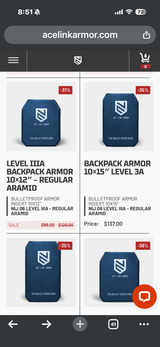 I wanted to talk to premier body armor for another vertx bag shield, but found ace link Armor and during shotshow they have a 30% off on their website (see links below). I ended up removing one side of the throw over body armor for a vehicle storage and putting it in my bag.